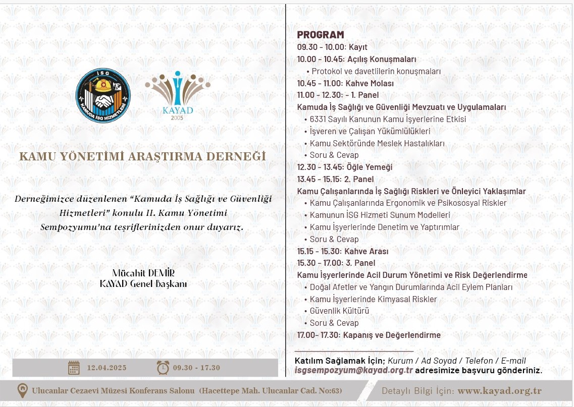 NOT: - Konuşmacılar Netleştikçe programa ilave edilecektir. https://www.kayad.org.tr/ adresimizden yayınlanacaktır.